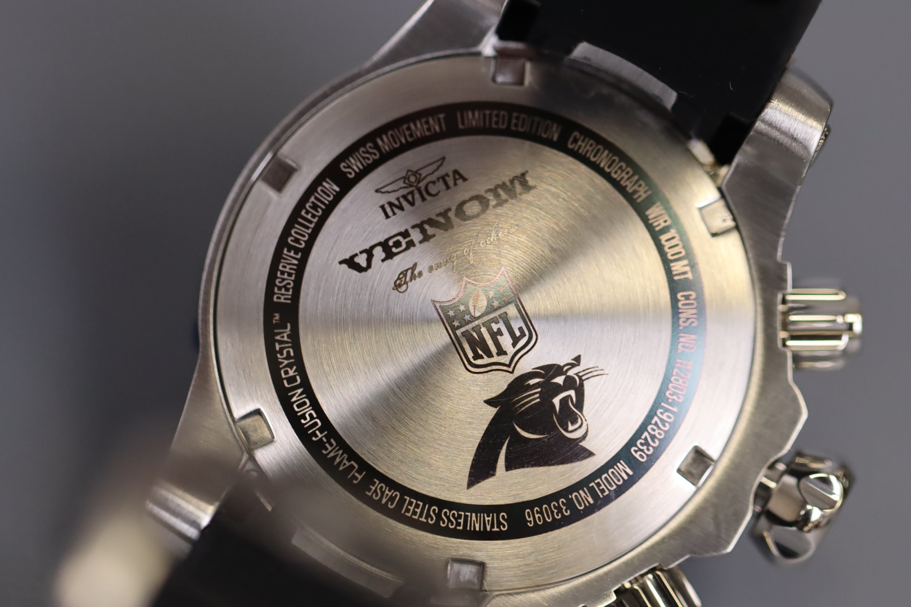 Elevate your style with the Invicta NFL Lady Quartz Watch, featuring a 44.40mm stainless steel and aluminum case, and a striking black and light blue antique silver-tone dial. This sleek timepiece boasts quartz precision (requires battery replacement) and offers a blend of sporty elegance. Perfect for NFL fans and watch enthusiasts alike, this watch is in Open Box condition and ready to make a statement.