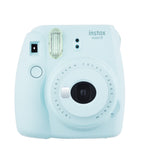 A compact instant film camera, the ice blue instax mini from Fujifilm has been updated for selfie shooters and features a range of convenient controls for producing credit card-sized prints. The sleek design incorporates a Fujinon 60mm f/12.7 lens, which offers a fixed focus from 2' to infinity, and a small selfie mirror is built into the front of the lens design for accurately composing self-portraits. Alternatively, a macro attachment lens is included to reduce the minimum focus distance for working with close-up subjects. For general shooting, the optical viewfinder is available and incorporates a central target spot to aid in composing images.