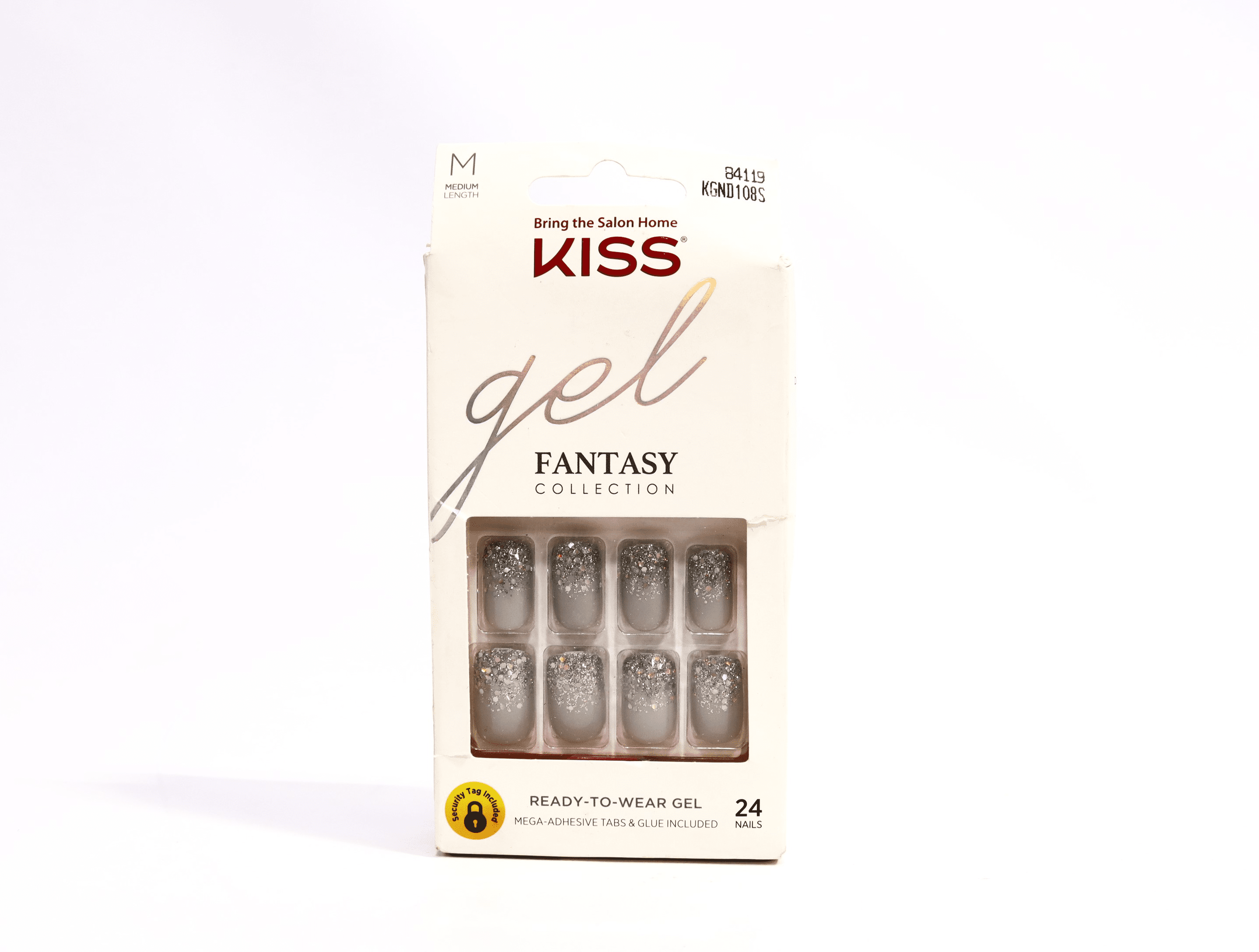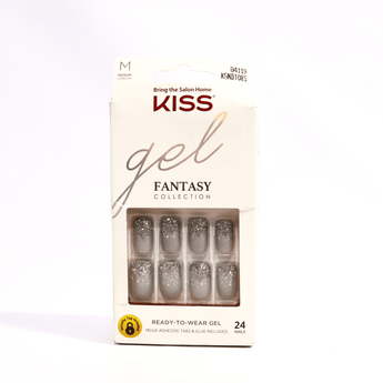 Kiss Gel Fantasy Medium Length Gray Glue-On Nails KGND108S Manhattan Tango Holographic Glitters