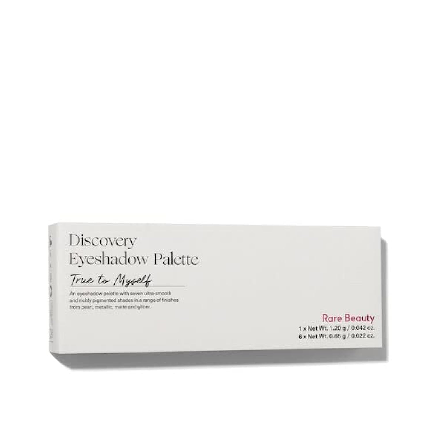 - VERSATILE BEAUTY. The Rare Beauty Discovery Eyeshadow Palette set offers 7 different shades to give you a wide variety of looks to choose, match and play with. Whether you want a matte, glitter or metallic finishes or combinations this eyeshadow set got you covered. A blendable, buildable crease and fade-resistant eye makeup that will bring out the beauty you already have.